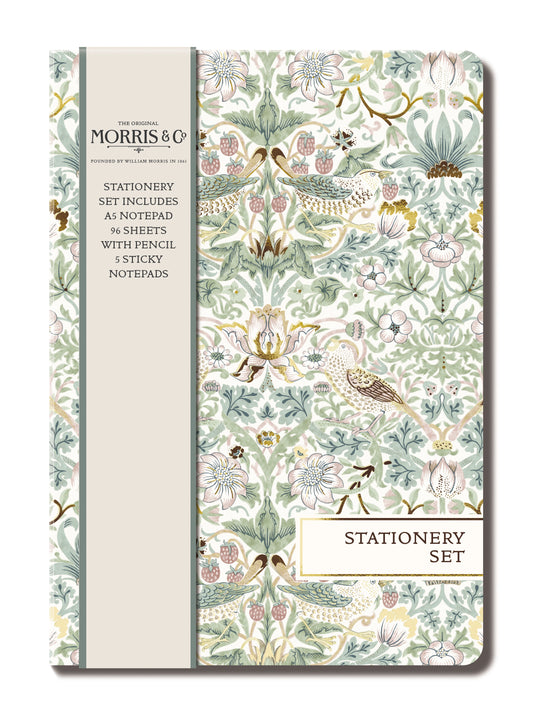 Morris & Co. Stationery Gift Set – A5 Notepad, 5 Sticky Note Pads & Pencil | Botanical Print
