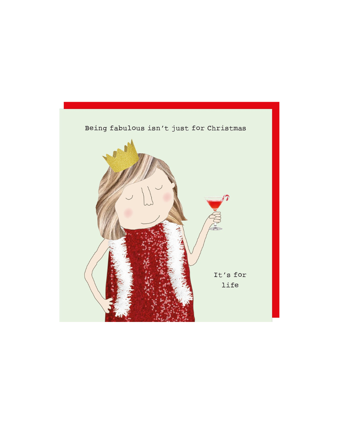 Fun Christmas card for friends. ‘Being fabulous isn’t just for Christmas. It’s for life.’ This Christmas card is blank inside for your own Christmas message. Designed and printed in the UK on FSC approved card, comes with a poppy red envelope.