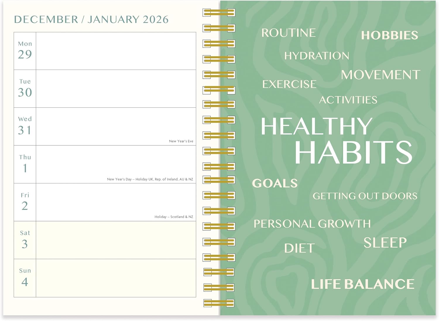 - Prioritise self-care with this beautiful dated journal. Encourages keeping healthy habits and practising mindfulness which managing a busy schedule.Week to view layout