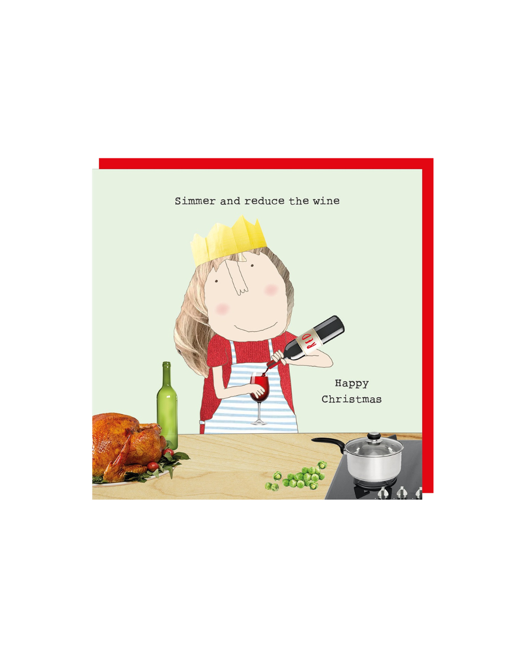 Christmas is coming, send a card to friends and family that raises some festive laughs, caption reads ‘Simmer and reduce the wine. Happy Christmas’. The card is blank inside for your own message. Designed and printed in the UK on FSC approved card, comes with a poppy red envelope.