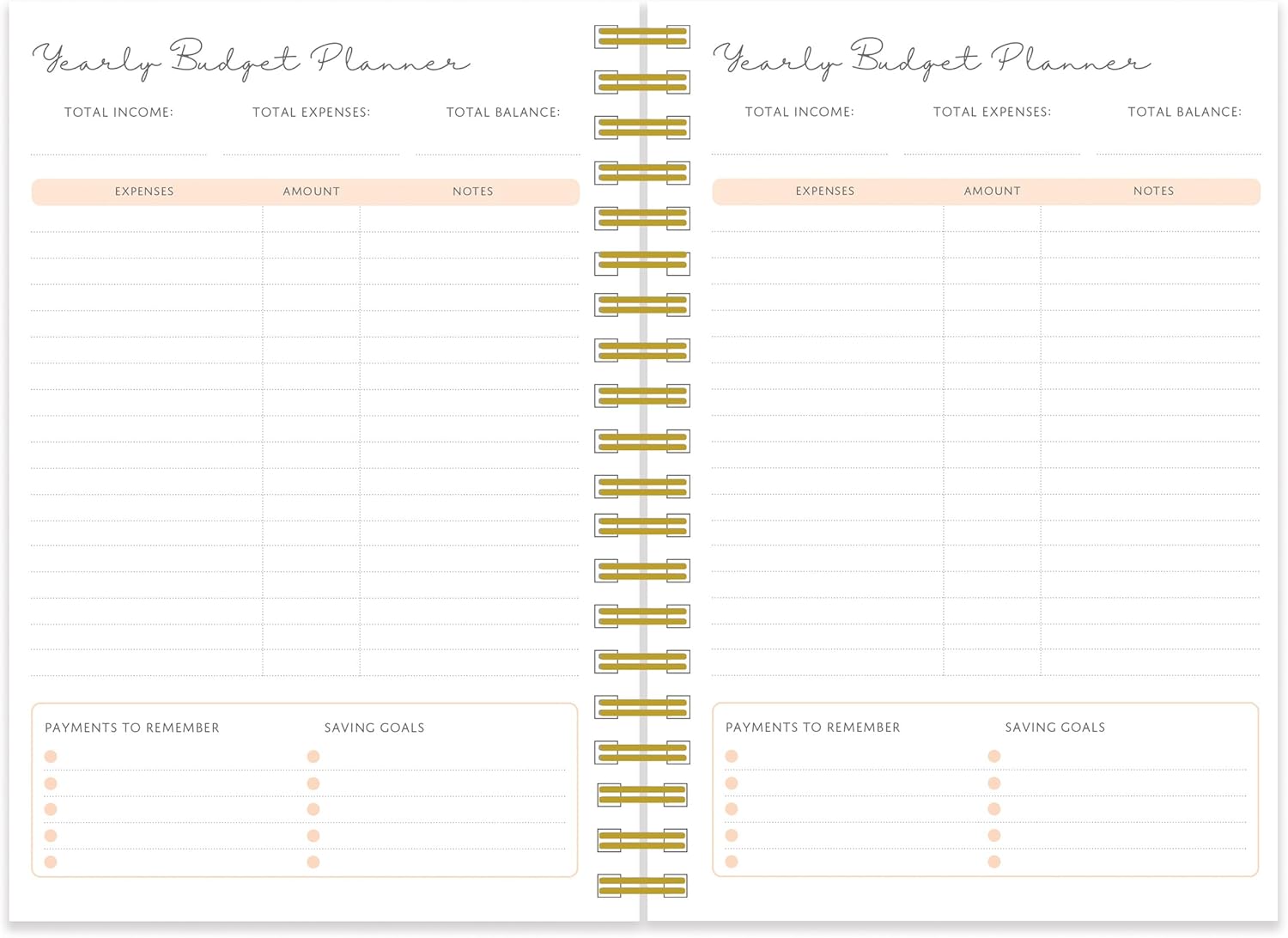 - Week to view layout. Equipped with a yearly budget planner to help you organise your finances, goals for the year and a convenient week-at-a-glance layout to track tasks and meal planning, plus a monthly overview for additional planning.